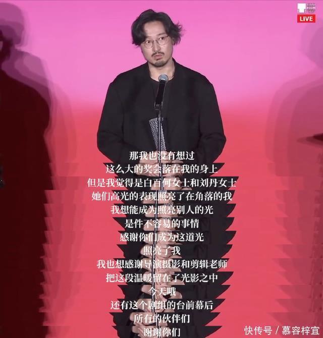 而就在之后的颁奖,则是导演和男主王传君一人一个奖杯,而王传君领奖的时候他也自嘲了一番: “我是一个配得感很低的人,我喜欢躲在团队的角落,我也不喜欢说很多话,成为焦点这件事会让我感到恐惧和压力。”